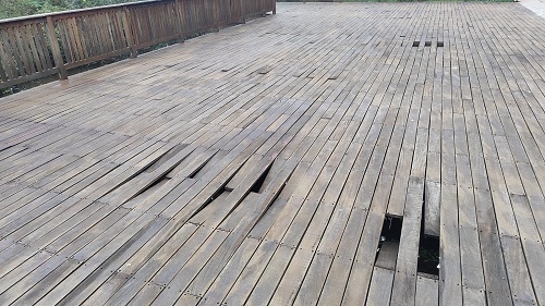 Pouco tempo depois, o deck do Parque do Lago de Campo Mourão já está precisando de reparos outros vez.