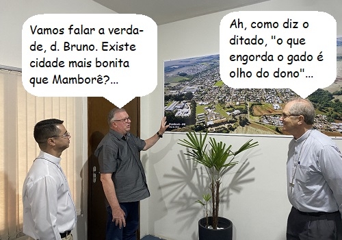 O clic é de Mamborê, onde o prefeito Ricardo Radomski recebeu, semana passada, a visita do bispo d. Bruno Versari. Junto com o padre Lussamir, eles não ficaram só na prefeitura, não. Também foram ao Hospital Municipal e ao Hospital de Olhos.