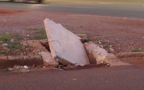 Situação dessa tampa, rua Marfim esquina com a av. Armelindo Trombini, atrás do ginásio de esportes.