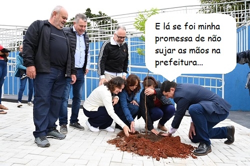O clic é de Terra Boa, no fim de semana, quando a prefeitura inaugurou o complexo esportivo Erineu Maruchi. A cerimônia incluiu o plantio de uma árvore e o prefeito Edmilson Moura ajudou, colocando a mão na terra e tudo.