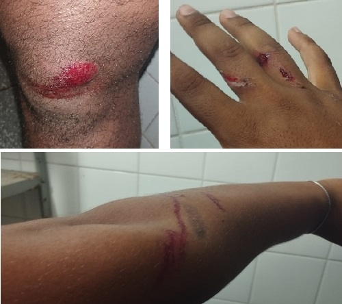 Atleta de Campo Mourão se machuca após cair de moto por causa de fios soltos. Foi nesta segunda-feira à noite, na rua Antônio Bueno de Camargo, perto do Parque do Lago.