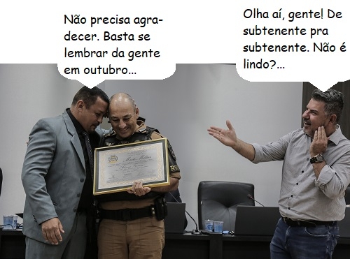 O clic é desta terça-feira, quando a Câmara de Campo Mourão entregou o título de Mérito Militar ao subtenente Adirans Ferreira. A entrega foi feita pelo autor, vereador Subtenente Macedo, e pelo chefe de Gabinete da prefeitura, Ricardo Borges, que representou o prefeito Tauillo Tezelli.