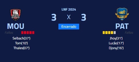Campo Mourão e Pato Branco empataram em 3 a 3, neste domingo, pela Liga Nacional de Futsal.