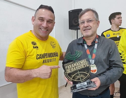 A Associação de Basquete de Campo Mourão entregou uma medalha ao prefeito Tauillo Tezelli. Foi como forma de agradecimento pelo apoio do município ao projeto Basquete Cidadão. A equipe, liderada pelo técnico Emerson de Souza, também apresentou o troféu de campeão paranaense sub-22, conquistado no mês passado. Através da Lei Municipal de Incentivo ao Esporte, o projeto Basquete Cidadão atende cerca de 400 atletas em 23 turmas, entre equipes de treinamento e iniciação.