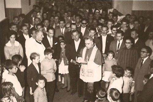 Na foto, momento da bênção do prédio pelo bispo d. Eliseu Simões Mendes, acompanhado pelo prefeito Milton Luiz Pereira e do ex-prefeito Antônio Teodoro de Oliveira, que iniciou a obra.