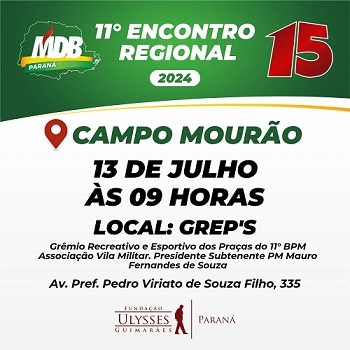 O MDB marcou encontro regional para o próximo dia 13, em Campo Mourão.
