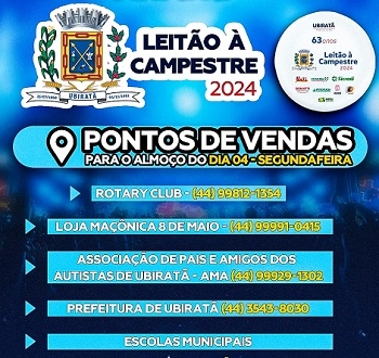 A Festa Leitão à Campestre, prato típico de Ubiratã, vai acontecer no estádio Municipal Claudinão.