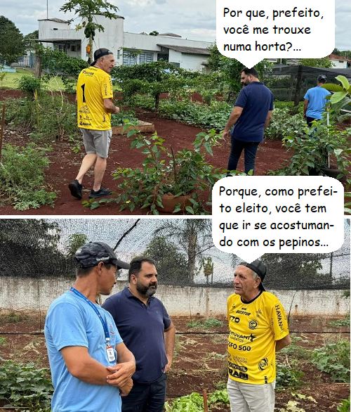 Os cliques são desta quarta-feira, em Campina da Lagoa, quando o prefeito Milton Luiz Alves e o prefeito eleito Padre Gianny visitaram a horta escolar do distrito de Salles de Oliveira.