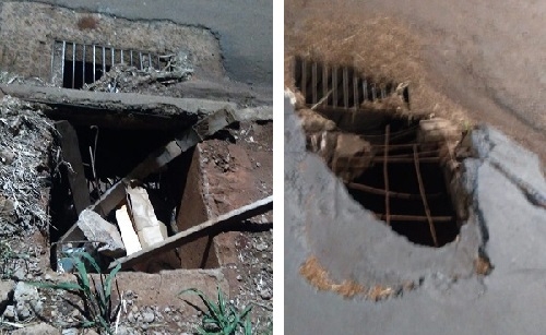 1) Situação do bueiro na rua Luiz Regio, no lar Paraná. 2) Na mesma rua, só que na entrada da Rua das Palmeiras.