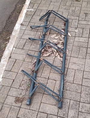 Será que foi o vento que entortou todo o “estacionamento” de bicicleta em frente à Câmara de Campo Mourão?