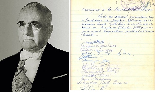 Completou 70 anos, neste sábado, da morte do presidente Getúlio Vargas. Ele cometeu suicídio dentro do Palácio do Catete, no Rio de Janeiro, em 24 de agosto de 1954. Dias depois, um movimento liderado por Geremias Cilião de Araújo tomou forma em Campo Mourão. Com um abaixo-assinado, ele solicitou à Câmara de Vereadores a mudança do nome da praça 10 de Outubro para Presidente Getúlio Vargas, o que foi aprovado e persiste até hoje.