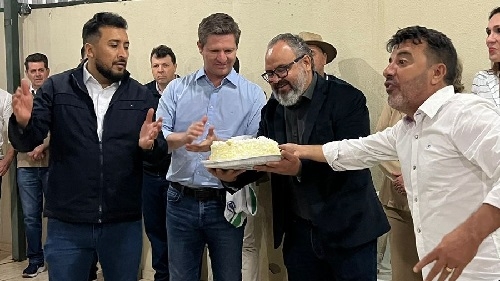 O secretário de Estado Santin Roveda (Justiça e Cidadania) e o deputado Adriano José estiveram neste fim de semana em Campo Mourão. Vieram para o lançamento da campanha dos candidatos a vereador pelo Avante. Políticos, empresários e líderes participaram do evento. Roveda e Adriano José foram presenteados com camisas da ABL Futsal. Eles também comemoram os 22 anos da empresa Oriagro Sementes e Grãos