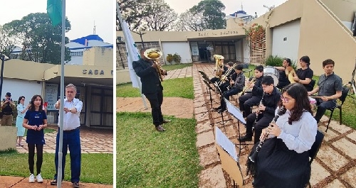 A Semana da Pátria em Campo Mourão foi aberta nesta segunda-feira com um ato cívico em frente à Casa da Cultura. Tradicionalmente o evento ocorre em frente ao Paço Municipal, mas com a prefeitura fechada para reformas optou-se pelo local alternativo. O prefeito Tauillo Tezelli participou e hasteou a Bandeira Nacional ao lado da neta Nina. A execução do Hino Nacional ficou por conta da banda mirim da Casa da Música. No sábado haverá desfile na av. Irmãos Pereira.