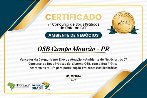 O Observatório Social de Campo Mourão foi premiado no 7º Concurso Nacional de Boas Práticas do Sistema OSB.