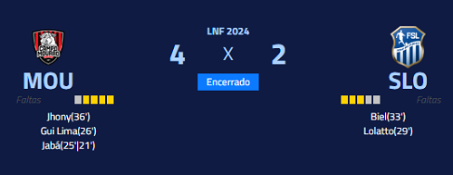 Venceu o São Lourenço/SC por 4 a 2, no ginásio Belin Carolo, pela Liga Nacional de Futsal.