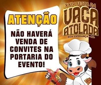 “Atenção! Não haverá venda de convite na portaria do evento!”.