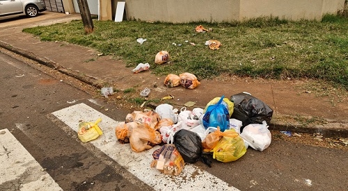 Os garis recolhem o lixo antes do caminhão passar. Os cachorros rasgam as sacolas e esparramam o lixo pela rua. Situação na Vila Cândida.