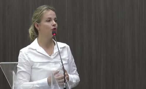 Naiany Hruschka Salvadori (PL), vereadora em Campo Mourão, sobre a campanha que disputou como candidata a vice-prefeita. Ela parabenizou os eleitos Douglas Fabrício (CDN) e Fátima Nunes (PSD); na sessão desta segunda-feira, um dia após as eleições.