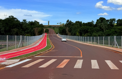 A prefeitura de Campo Mourão concluiu o prolongamento da rua Santa Catarina, que agora atravessa o curso de água do Parque do Lago. A obra incluiu calçada, ciclovia e alambrados nos dois lados da via. A novidade liga o jardim Gutierrez ao Residencial Parque do Lago, facilitando o deslocamento entre as duas regiões e contribuindo para a melhoria do fluxo viário.
