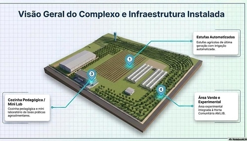 O investimento é estimado em mais de R$ 2 milhões e será implantado em uma área de cerca de 20 mil m2. A estrutura contará com estufas automatizadas, barracão agroindustrial, cozinha pedagógica, laboratório e integração com a Horta Comunitária.