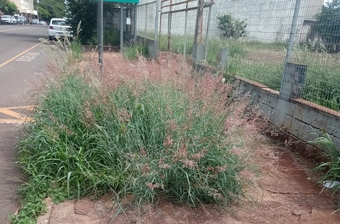 Mato cobrindo a calçada na rua São Josafat, esquina com a av. Capitão Índio Bandeira.