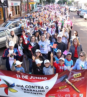 Teve passeata pelo centro de Campo Mourão nesta sexta-feira. Nada de greve desta vez. Foi o Comitê Intersetorial do Programa de Erradicação do Trabalho Infantil de Campo Mourão, que lançou o projeto “Novos Rumos – Erradicação do Trabalho Infantil”. Além da passeata, houve ato público na praça São José. A prefeita Regina Dubay e os vereadores Edilson Martins e Nelita Piacentini participaram.