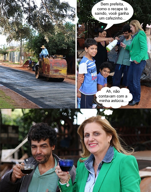 Os cliques são deste sábado, quando a prefeitura seguiu com o trabalho de recape da av. Manoel Nogueira, no jardim Paulino (Lar Paraná). A prefeita Regina Dubay esteve por lá, conferindo os trabalhos e conversando com moradores. Entre uma conversa e outra, não faltou um cafezinho. Ah, mas não saísse o recape pra ver a cevada que vinha...