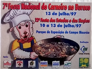 ...para o prato típico de Campo Mourão ser servido na 25ª Festa Nacional do Carneiro no Buraco. O cartaz acima é da sétima edição do evento, realizada em 1997. Foi a primeira festa do prefeito Tauillo Tezelli. Paralelamente foi realizada a 12ª Festa dos Estados e das Nações. Foi o ano do cinquentenário de Campo Mourão.