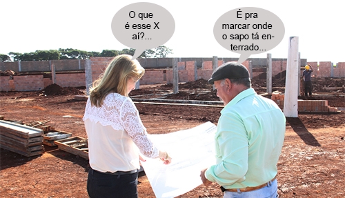 O clic é do conjunto Avelino Piacentini, que vai ganhar uma escola com seis salas de aula. O investimento é de R$ 1 milhão, sendo R$ 107 mil de contrapartida da prefeitura e o resto do governo federal. A prefeita Regina Dubay foi dar uma conferida na obra. Ela lembrou que o bairro também vai ganhar uma Super Creche. E que fique claro: o "sapo enterrado" é só por conta do bom humor deste Site...