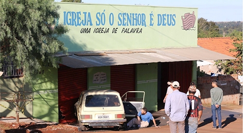 Acredite. Essa Brasília deu de cara com essa igreja. Foi sábado à tarde, na rua Alcides S. de Andrade, no Lar Paraná. Segundo a Polícia Militar, o motorista estava bêbado e foi encaminhado para a delegacia. Ele não se feriu. A igreja e a Brasuca tiveram danos de pequena monta. Ah, só por Deus mesmo...