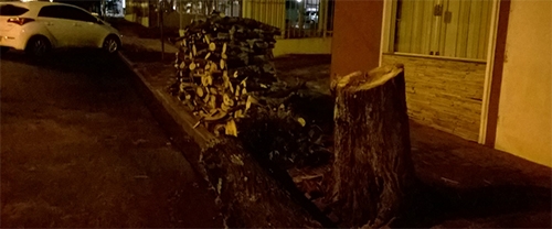 “Árvore cortada na rua São José, entre as avenidas Goioerê e Manoel Mendes de Camargo, no centro de Campo Mourão. A pergunta que não quer calar é a de sempre: será que precisava?”