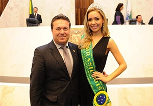 Olha o deputado Márcio Nunes fazendo pose ao lado da paranaense Vanessa Crippa, a mais nova Miss Brasil Globo. Ela foi eleita em concurso que aconteceu Brasília. Como prêmio, a curitibana recebeu uma viagem para a Tailândia. E uma visitinha à Assembleia, uai!...