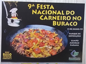...para o prato típico de Campo Mourão ser servido na 25ª Festa Nacional do Carneiro no Buraco. O cartaz de hoje é da nova edição do evento, realizado em 11 de julho de 1999. Era tempo do prefeito Tauillo Tezelli. O cartaz destacava, além do carneiro, que haveria “rodeio universitário”.