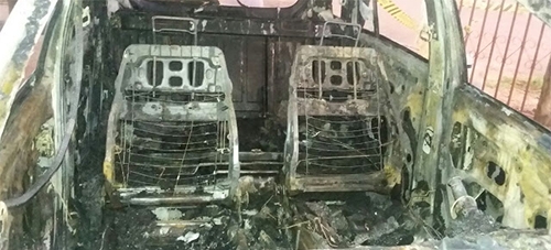 Na madrugada desta quinta-feira, colocaram fogo no carro que estava na garagem da casa dele.