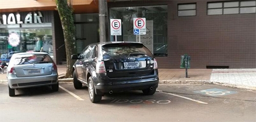 “Vaga para idosos, perto do Brasdesco Campo Mourão, mas quem saiu do carro, na tarde desta terça-feira, foi uma moça com cerca de 20 anos. E não ficou nenhum idoso no veículo”.