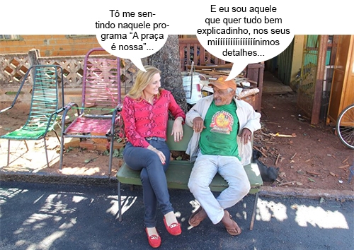 O clic é de sexta-feira, no jardim Tomasi, onde a prefeitura estava fazendo o recape e tapa buracos nas ruas João Bueno e José Francisco da Silva. A prefeita Regina Dubay foi lá conferir asa ações de perto e aproveitou pra conversar com moradores. Ah, mesmo na rua, melhor prosear sentado, né?...