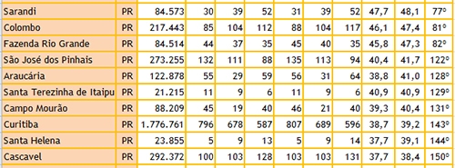 No ranking nacional, Campo Mourão foi da 194ª para a 131ª posição.