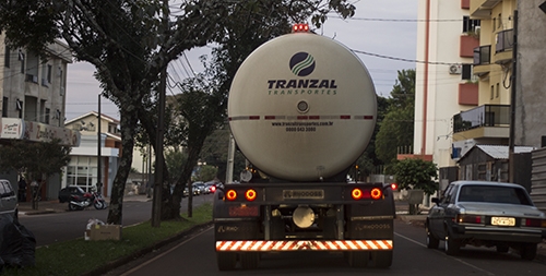“Carreta passa pela av. Goioerê, no centro de Campo Mourão, por volta das 17h30 desta segunda-feira”.