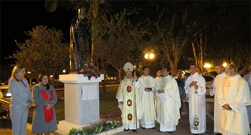 A estátua, em frente à Catedral, foi inaugurada após missa celebrada pelo bispo d. Javier Paredes.