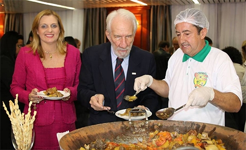 A prefeitura de Campo Mourão serviu nesta quinta-feira o carneiro no buraco no restaurante escola do Sesc, em Curitiba. O presidente da Fecomércio, Darcy Piana, participou. Olha ele aí, com a prefeita Regina Dubay. A vereadora Nelita Piacentini também foi. O prato típico foi preparado pela Associação Panela. O lançamento oficial da 25ª Festa do Carneiro no Buraco será no próximo dia 12, no Celebra.