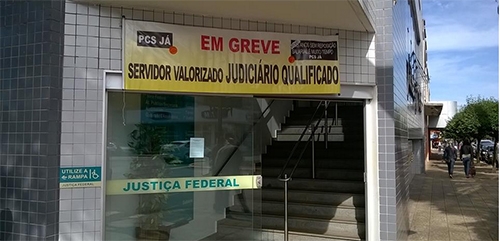 Quem disse que só os professores estão em greve? Tem mobilização também na Justiça Federal. Em Campo Mourão, faixas dizem que a categoria está sem reajuste salarial há nove anos. “O executivo e o legislativo sobem os próprios salários, mas deixam o judiciário ao abandono”, diz que faixa. “Quem irá julgar os corruptos?”, questiona outras. Além do reajuste, a categoria pede plano de cargos e salários.