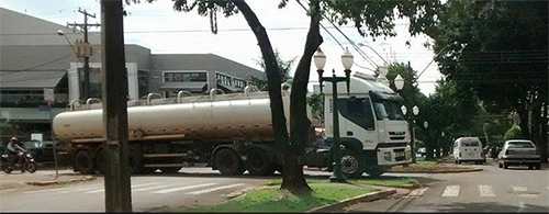 “Pouco antes do meio-dia desta quinta-feira, carreta cruza a av. Manoel Mendes de Camargo, pela rua Santa Catarina, no centro de Campo Mourão”.