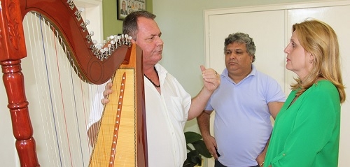 O músico Ricardo Kienen esteve esta semana com sua harpa no gabinete da prefeita Regina Dubay. Ele é filho do radialista Antonio Kienen (falecido), que marcou época no rádio mourãoense.