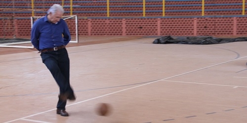 O ex-prefeito Nelson Tureck também foi à UTFPR nesta sexta-feira e aproveitou para ver a quantas andam as obras de reforma do ginásio Belin Carolo. Apesar das obras, bateu bola e tudo na quadra.
