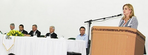 Ao discursar na UTFPR, nesta sexta-feira, a prefeita Regina Dubay disse que vai honrar o compromisso de doar nova área à UTFPR.
