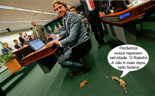 O clic é desta quinta-feira, em Brasília, quando um manifestante soltou ratos na Câmara dos deputados. Olha os bichinhos aí, perto do deputado Zeca Dirceu. Um assessor do deputado Fernando Giacobo foi acusado pelo ato, mas negou a autoria. Lembrando que Ratinho Jr agora é deputado estadual e está licenciado para ser secretário de Estado.