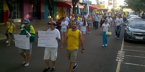 Cerca de 350 pessoas participaram neste domingo de protesto contra o governo federal em Campo Mourão.