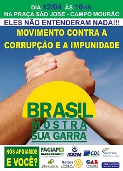 Desta vez entidades como Acicam, OAB, Rotary, Maçonaria e CDL assumiram o movimento "contra a corrupção e a impunidade".