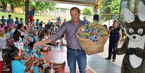 A Páscoa também foi recheada para os alunos das escolas municipais de Moreira Sales. Foram distribuídos mais de 2 mil kits de ovos de chocolate. O prefeito Luiz Volpato ajudou na distritubuição. E que cestinha, que nada! Levou foi um balaio cheio de ovos.