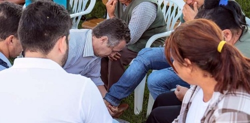 O prefeito Claudinei Minchio participou com direito a lavar e beijar os pés de 12 varredeiras de rua da cidade.